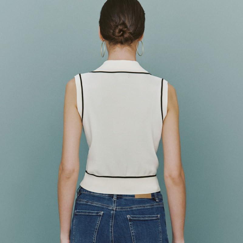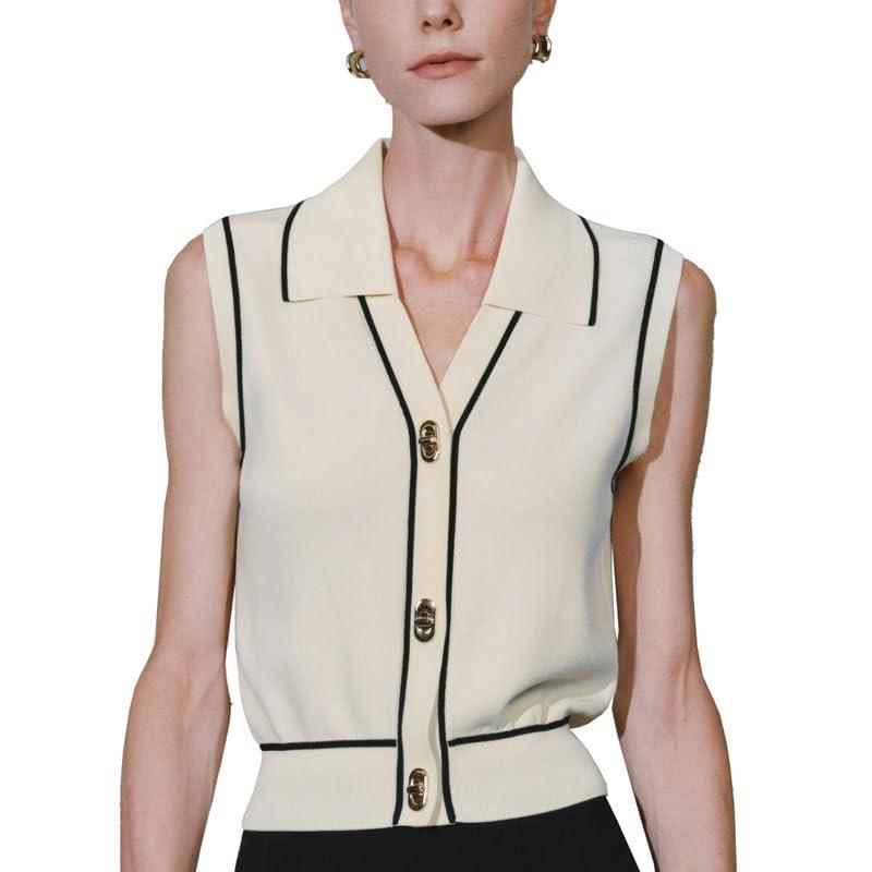 Womens Sweater Vest 2024 Sleeveless Lapel V Neck Button Down Knit Casual Tank Summer Tops