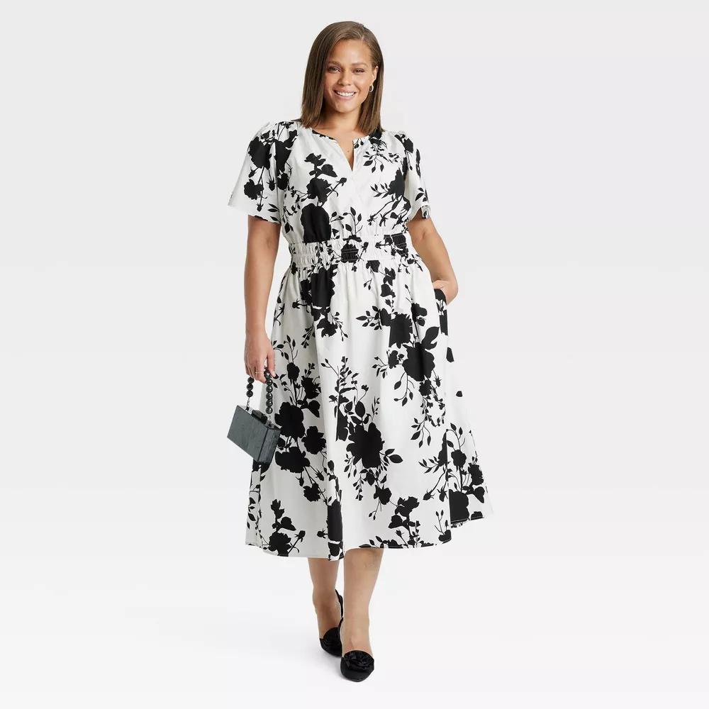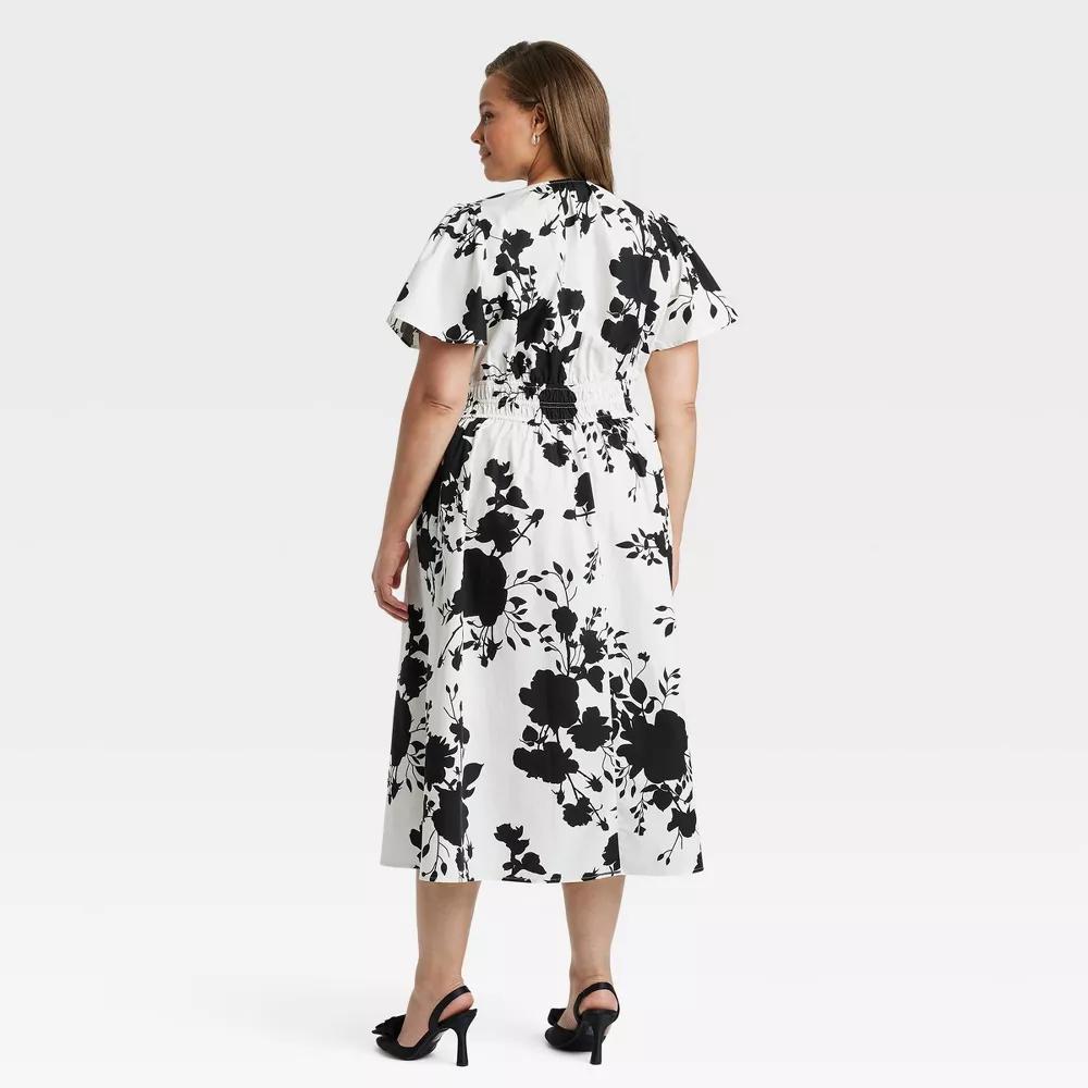 Women's Flutter Short Sleeve Poplin Midi A-Line Dress - A New Day™