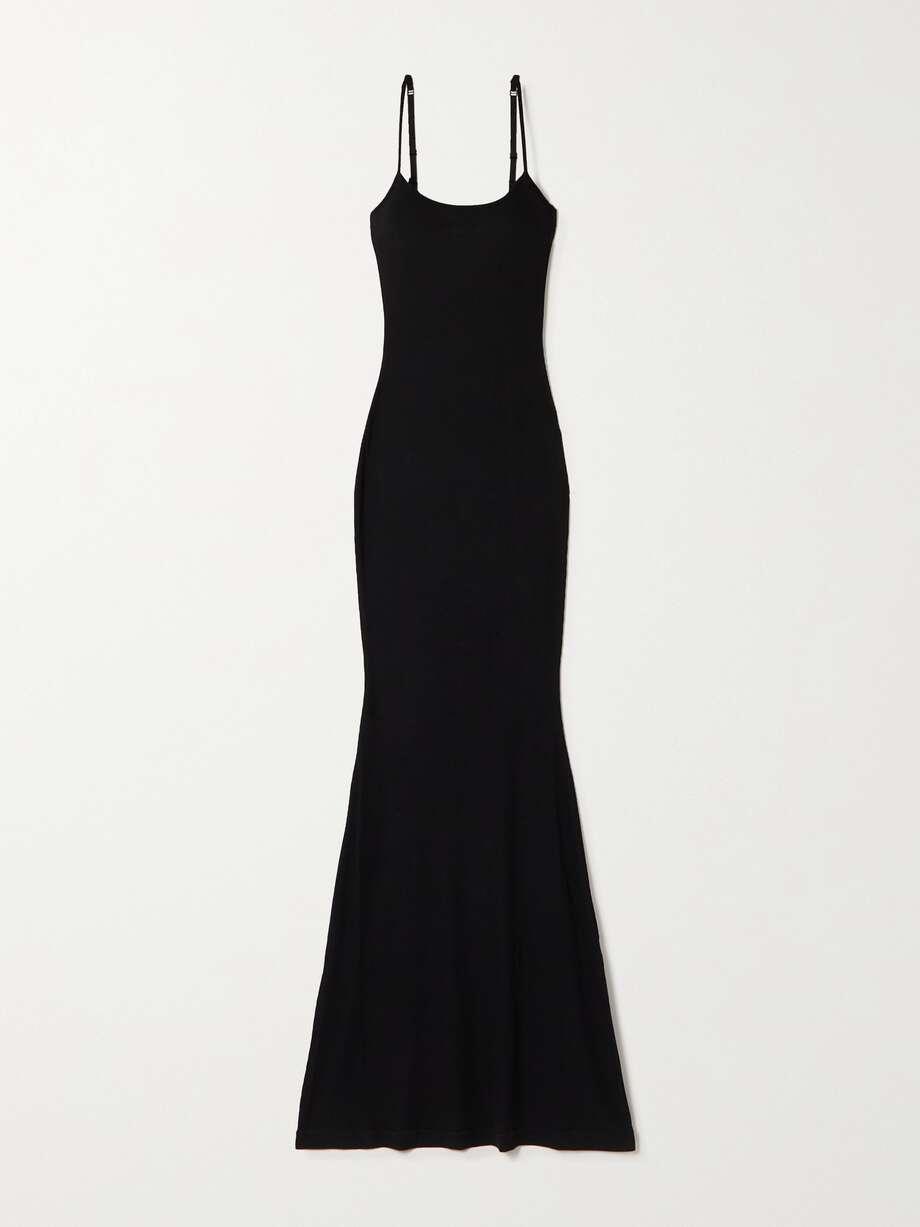 SKIMS Soft Lounge Ribbed Long stretch-modal slip dress - Onyx