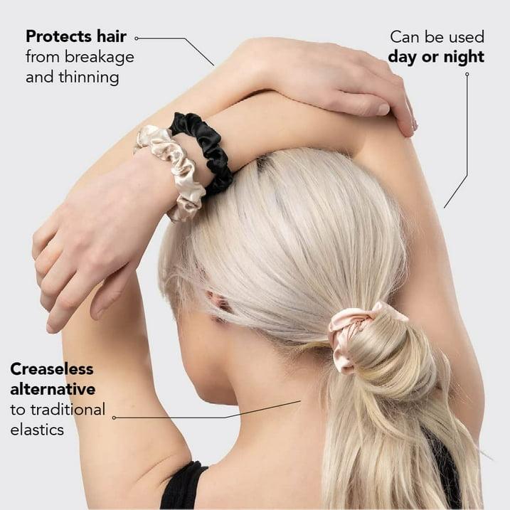Kitsch Pro Satin Sleep Scrunchies are your new nighttime essential! Securely tie up your hair at night so you can stay cool and comfortable, and simultaneously protect it from the damage caused by traditional hair elastics. 100% Satin Charmeuse scrunchies slide through hair without abrasion, allowing you to wake up frizz-free and ready to take on the day! Banish breakage and conquer creases with these chic day to night no-brainers. Introducing our extra large scrunchies, perfect for scrunches and all your hair needs. These cute scrunchies are jumbo-sized, making them perfect for thick hair and are made of the highest quality. Satin Scrunchie. Ponytail Holder. The Kitsch Assorted Satin Scrunchies, 5pcs—a perfect blend of elegance and functionality designed to meet all your hair needs. These versatile scrunchies for women are perfect for any occasion, whether you need a satin hair wrap for daytime style or sleep scrunchies for hair at bedtime. Our collection includes a variety of silk scrunchies, which are not only ideal as silk hair ties for sleeping but also serve as luxurious hair scrunchies for women's hair. Elevate your pony tails hair ties with our range, including velvet scrunchies and no crease scrunchies that ensure your hair stays flawless. The kitsch silk scrunchies are available in an array of colors, including a charming pink scrunchie, making them the ultimate kitsch satin hair scrunchies. Designed for all hair types, from scrunchies for women thick hair to satin hair scrunchies that are gentle on fine strands, these kitsch scrunchies are a must-have. Each set embodies the essence of kitsch hair products, providing both cute hair ties and pony tail holders for adults women, perfect for adding a touch of elegance to any outfit. Our soft scrunchies for women are the ideal sleep scrunchie, offering a no crease hair tie that’s perfect for hair scrunchies for sleeping. Whether you need a satin hair tie for daytime or silky scrunchies for nighttime, our scrunchies for thick hair offer the perfect solution. Complete your collection of cute hair accessories with scrunchy hair ties from Kitsch, including silk scrunchies for women and kitsch hair tie that double as sleep accessories. The Kitsch Assorted Satin Scrunchies are the ultimate hair accessories, suitable for all, from hair accessories for girls to silky scrunchies for women. Designed for comfort and style, our kitsch satin scrunchies and kitsch satin sleep scrunchies provide the perfect no-damage hold. With silky hair ties and kitsch scrunchies that are as soft as they are stylish, you’ll love incorporating these soft hair ties into your routine. The Kitsch Assorted Satin Scrunchies set is your go-to for silk scrunchies for thin hair, satin scrunchies for curly hair, and satin scrunchie for a no-fuss, chic look. Complete with a satin hair wrap for sleeping and a satin hair bonnet for sleeping, these hair ties for women are the epitome of style and comfort. Discover the magic of silky hair ties with Kitsch, the brand that brings you premium kitsch scrunchie options and soft scrunchies for every hair type.