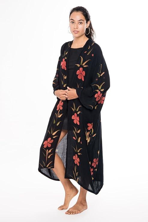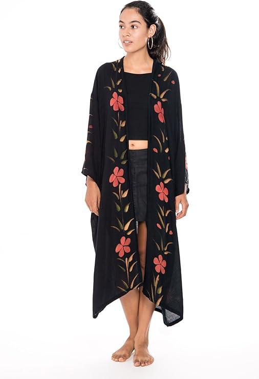 The Bali floral kimono is the perfect piece to spice up any outfit. Feminine, lightweight and ideal for transitioning from day to night. Featuring an effortless shape, open-front, two front pockets and tie belt at the waist. If you're looking for a statement piece you've come to the right place! -This style is available in Black, Pink and Navy Blue. -One size fits all. Model is 5'7. -Made in Bali.Disclosure: We are a participant in the Amazon Services LLC Associates Program, an affiliate advertising program designed to provide a means for us to earn fees by linking to Amazon.com and Affiliate sites.