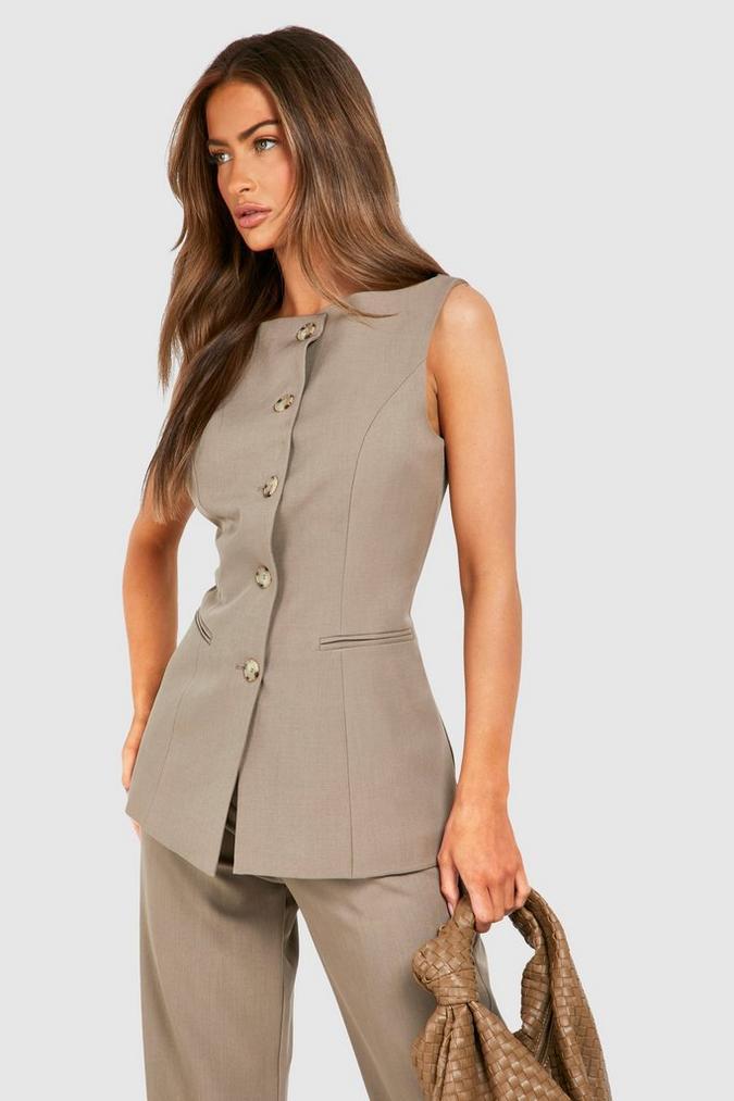 Boat Neck Mock Horn Longline Fitted Vest