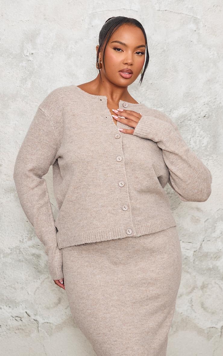 We can't get enough of this plus taupe melange soft knit basic button up cardigan, it's a must-have for every occasion. With a staple taupe shade, a melange soft knit material and button up detail, you're not going to want to put this one down. Team with the matching skirt, neutral heels and shoulder bag for a look that won't go unnoticed. It's a yes from us.