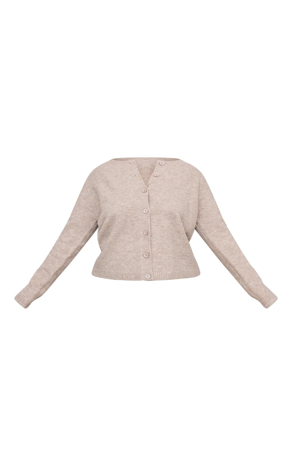 Plus Taupe Melange Soft Knit Basic Button Up Cardigan