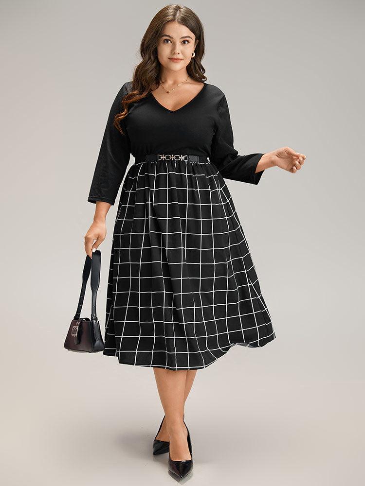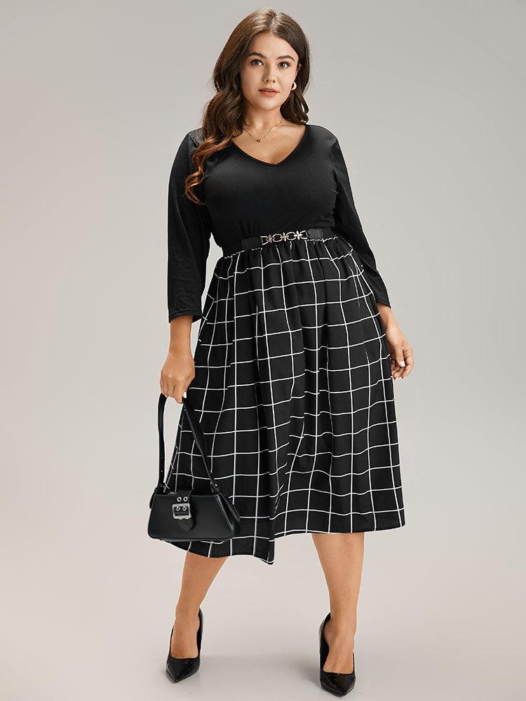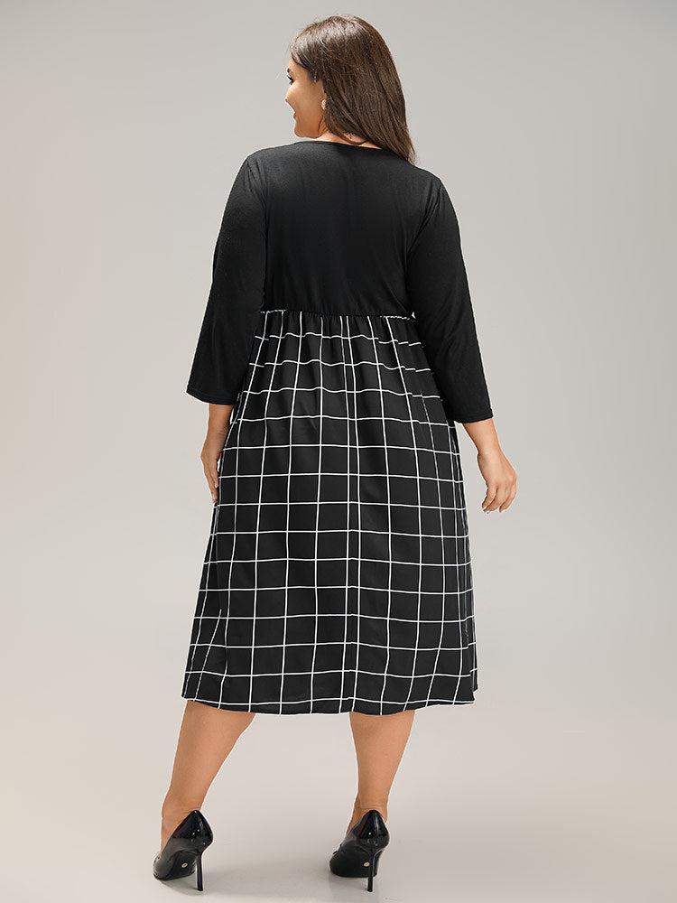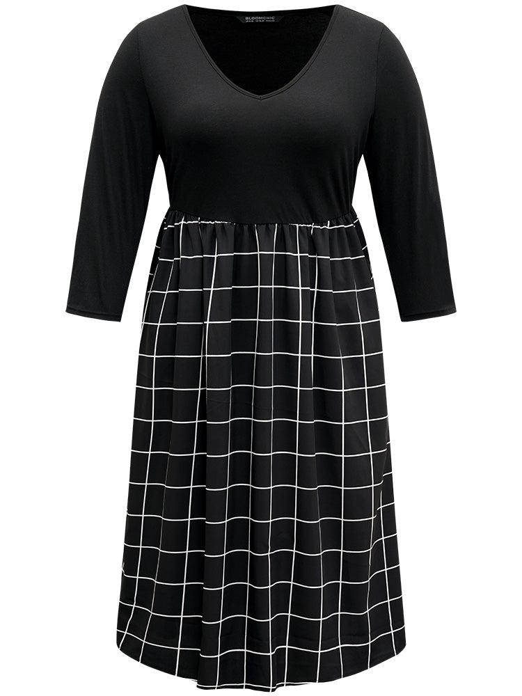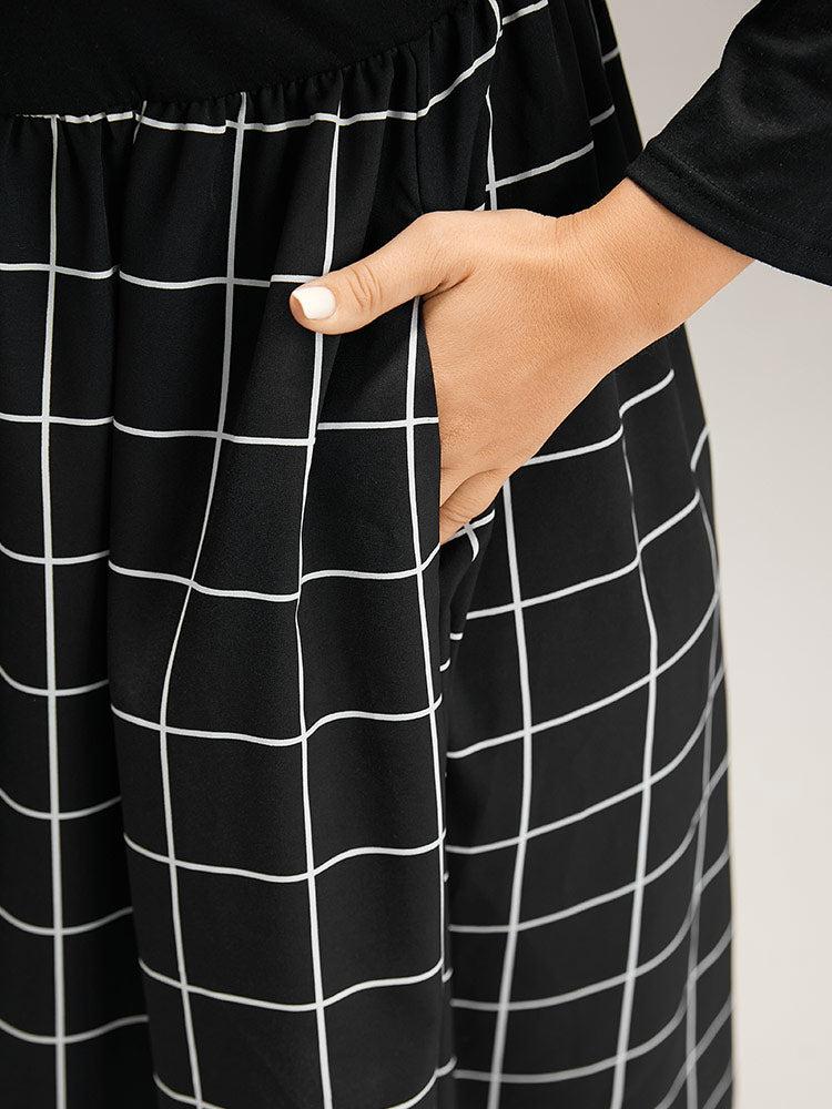 Season: Winter. Color: Black. Style: Casual. Neckline: V-neck. Sleeve Type: Regular Sleeve. Pattern Type: Plaid. Details: Pocket, Elastic Waist, Printed, Patchwork. Pocket: It is perfectly sized to carry a phone. Belt: No-belt.