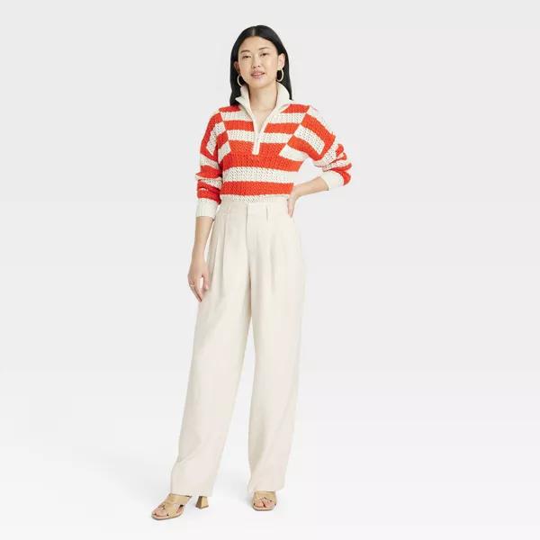 Women's High-Rise Linen Pleat Front Straight Trousers - A New Day™