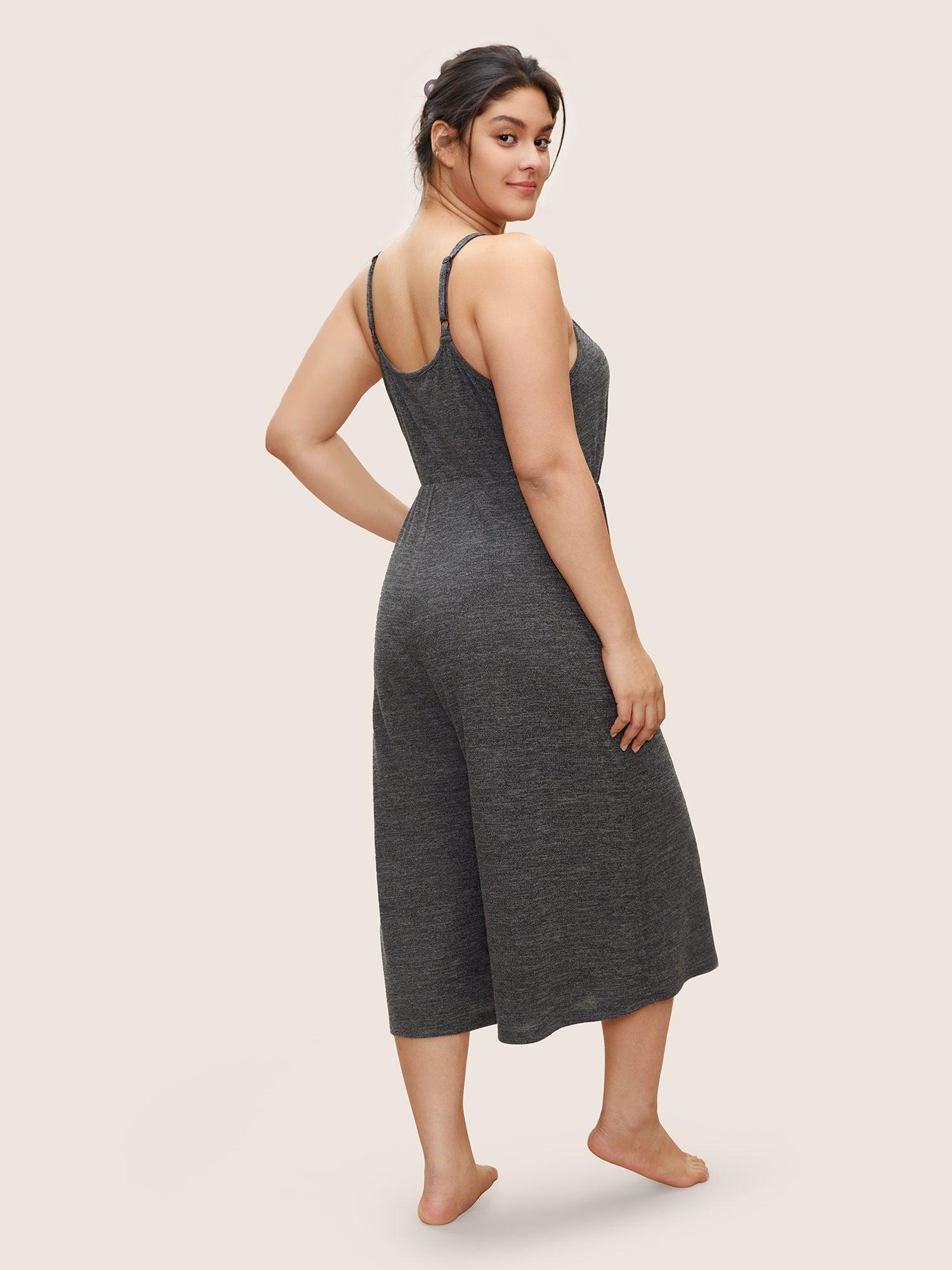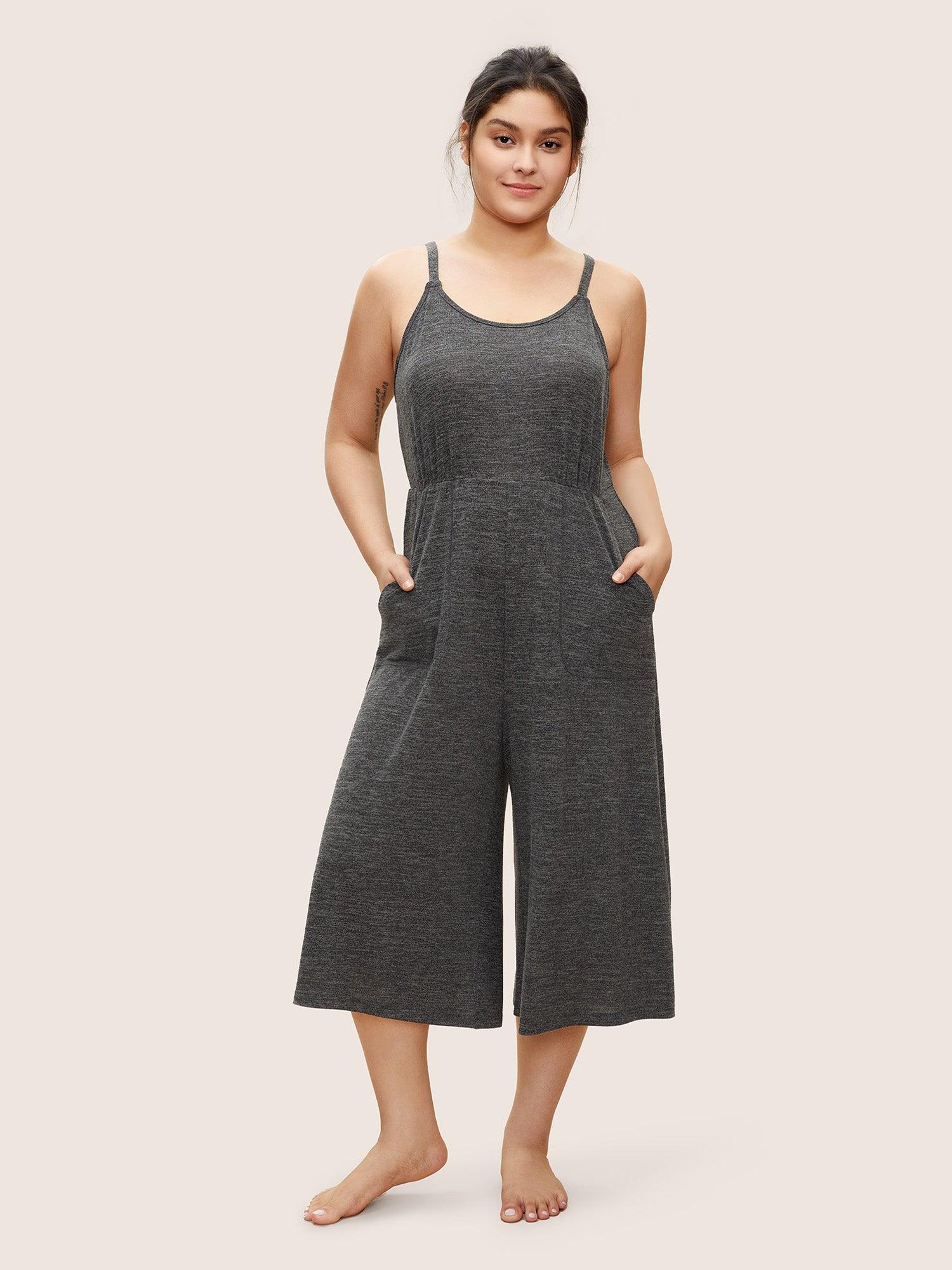 Solid Heather Adjustable Straps Pocket Sleep Jumpsuit