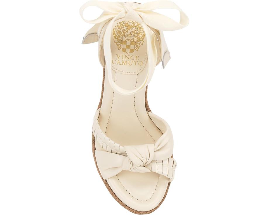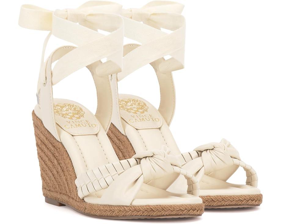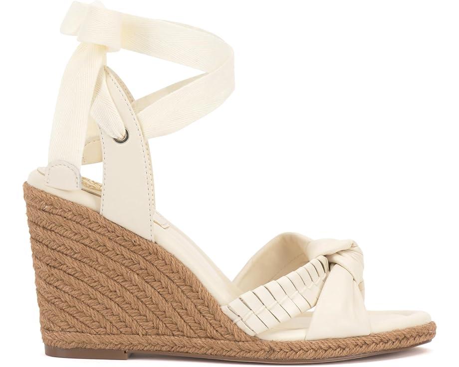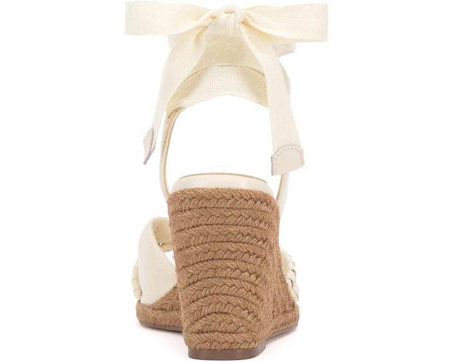 Mark your footsteps by styling the Vince Camuto® Floriana. Elevate your style with this seasonal wedge, boasting an espadrille wrap and sliver platform. The sandal features a knotted X band strap and a sling strap with a tie ankle wrap closure for a perfect fit. The open round toe adds a touch of sophistication, while the padded synthetic insole ensures all-day comfort.